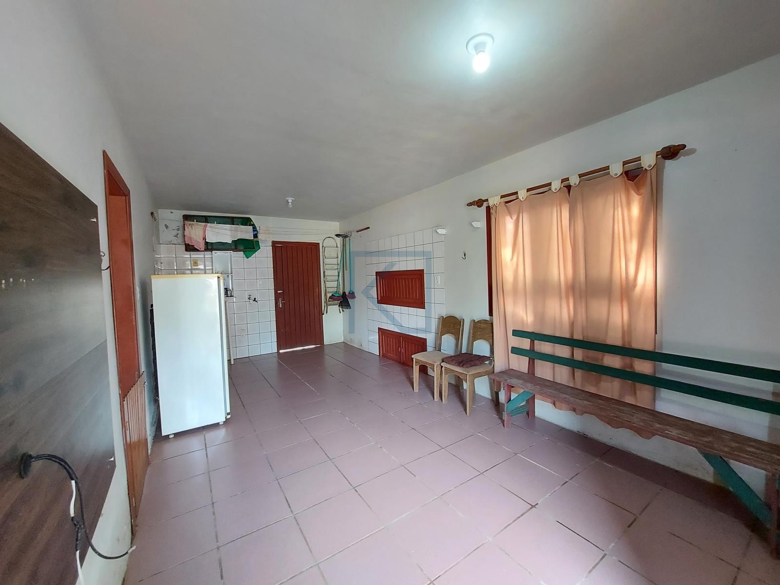 Distribuída em três dormitórios, área com churrasqueira, cozinha, banheiro social e pátio fechado.