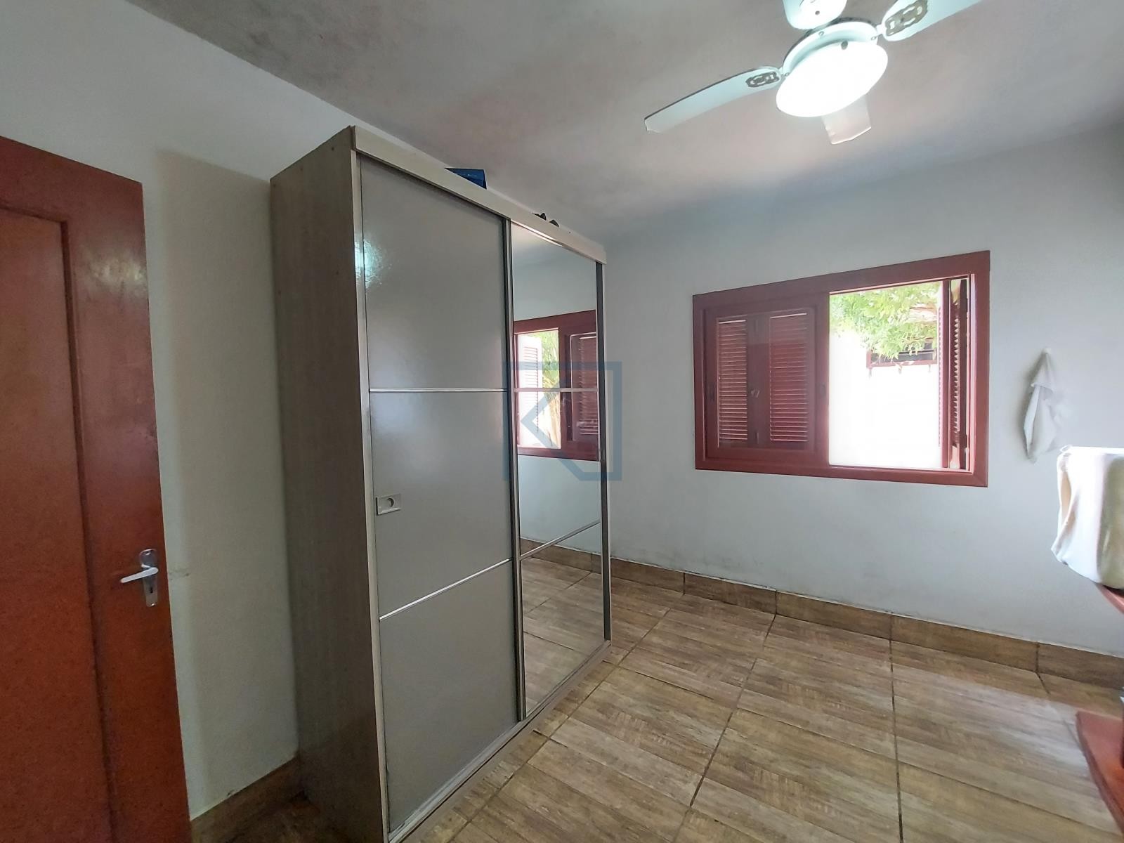 Distribuída em três dormitórios, área com churrasqueira, cozinha, banheiro social e pátio fechado.